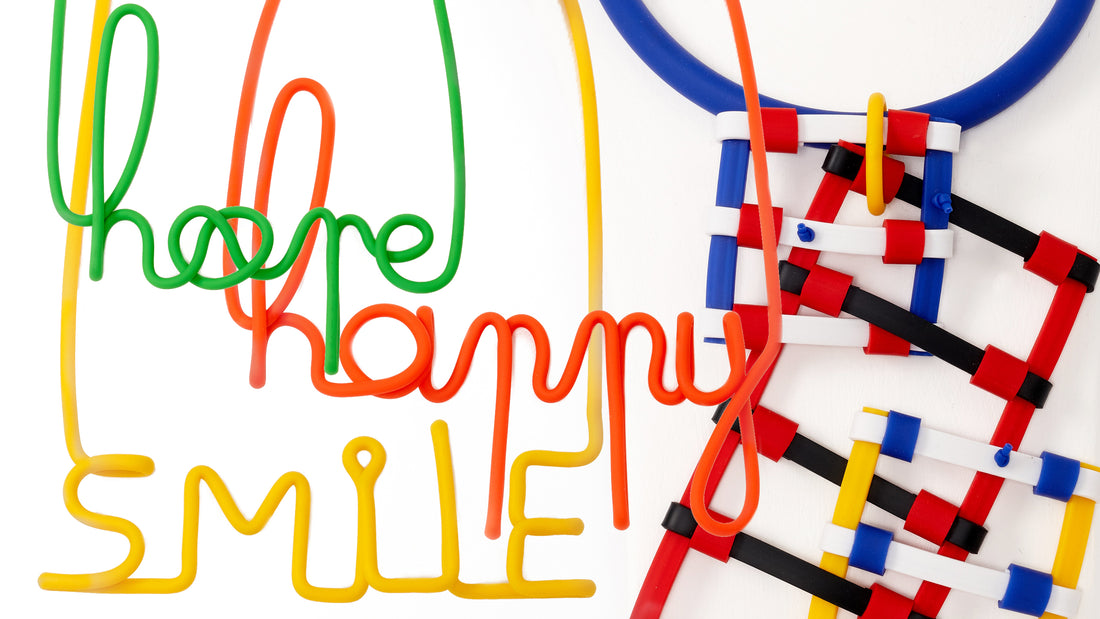 He thought it would be fun, with the prevalence of mask wearing, to communicate with 'word necklaces' - SMILE being one.